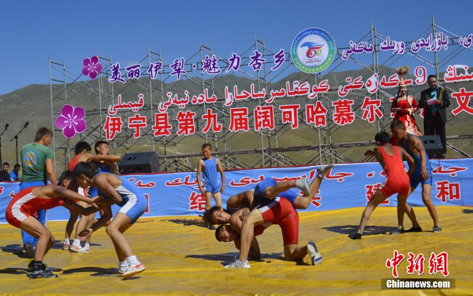 People perform wrestling at the opening ceremony. (CNS/Mu Zhongqing)