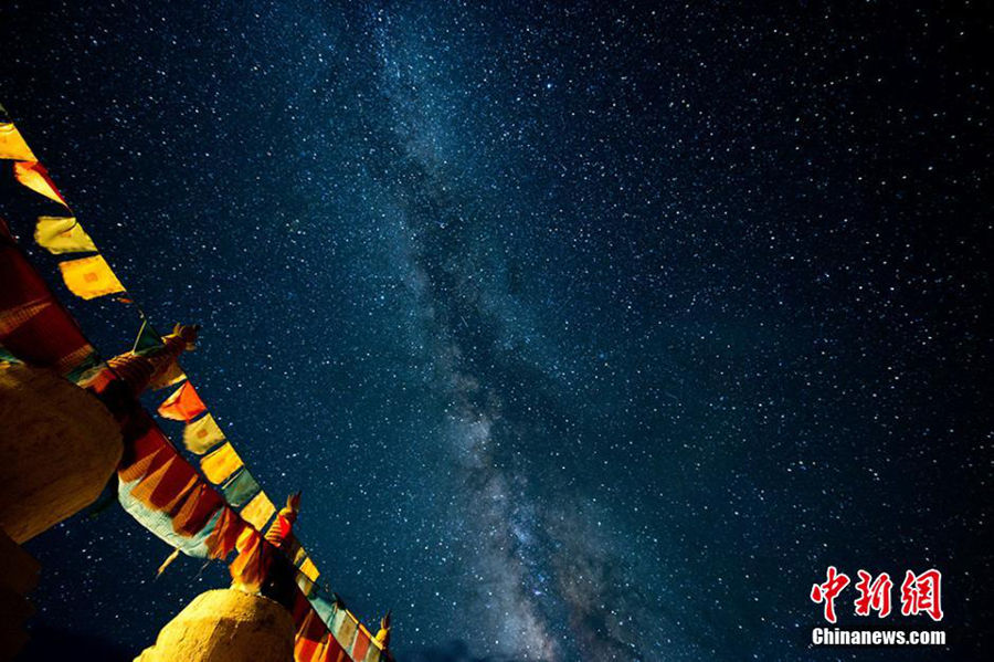 Waqie pagoda forest combined with countless prayer flags form the most fascinating scenery in a summer night in Hongyuan County of Aba (Ngawa) Autonomous Prefecture, Sichuan province. (Chinanews/Yang Yaguang)