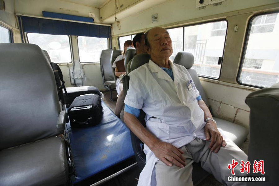Wu Dianhua, an 80-year-old president of Jizhou Workers’ Hospital in Hebei Province, has led a medical team to help treating people in the Ludian earthquake stricken area, Aug. 10, 2014.