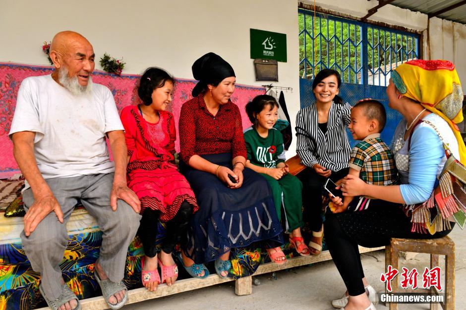 Ayturrem is together with the folks in the village. (Chinanews/Du Zhao)