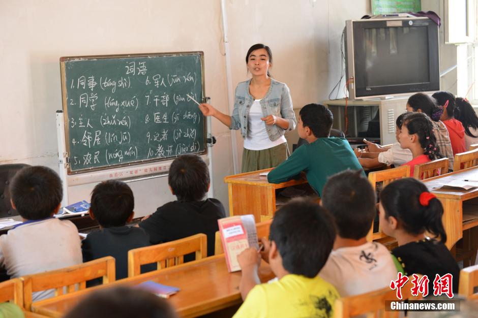 College student Ayturrem Tuhonyaz is from a small village in the Awat County of Aksu Prefecture, Xinjiang Uyghur Autonomous Region. During this summer vocation, she came back home and taught children to learn Chinese together with Ayguzalay Yesen, who is also a college student in another province. "The folks are always so nice and they invite us for dinner every time we come back home. We want to do something for them in return. So we decided to teach Chinese in the village and hope more students will enter colleges in the inland like us."
