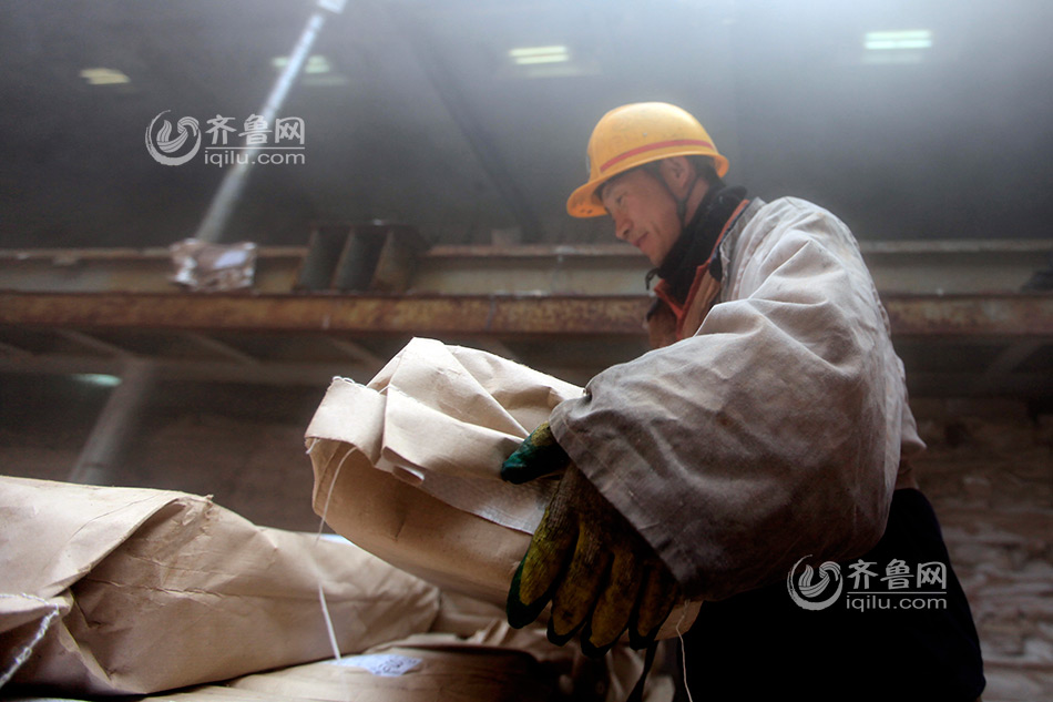 A worker carries a chunk of frozen fish. (Iqilu/Sun Zhiwen)