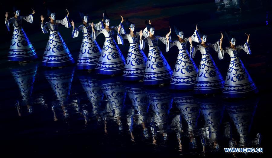 Dancers perform during the opening ceremony for Nanjing 2014 Summer Youth Olympic Games in Nanjing, capital of east China's Jiangsu Province, Aug. 16, 2014. (Xinhua/Yan Yan)