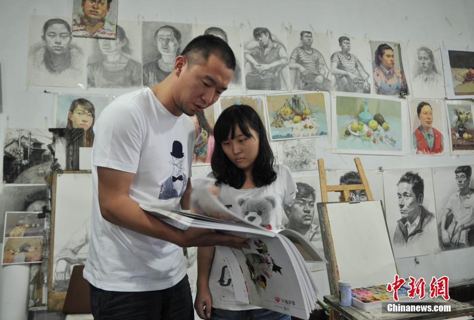 A Dan, a kindhearted painting teacher, is teaching the one-armed girl Yong Qian on August 16, 2014.(Photo/CNS)