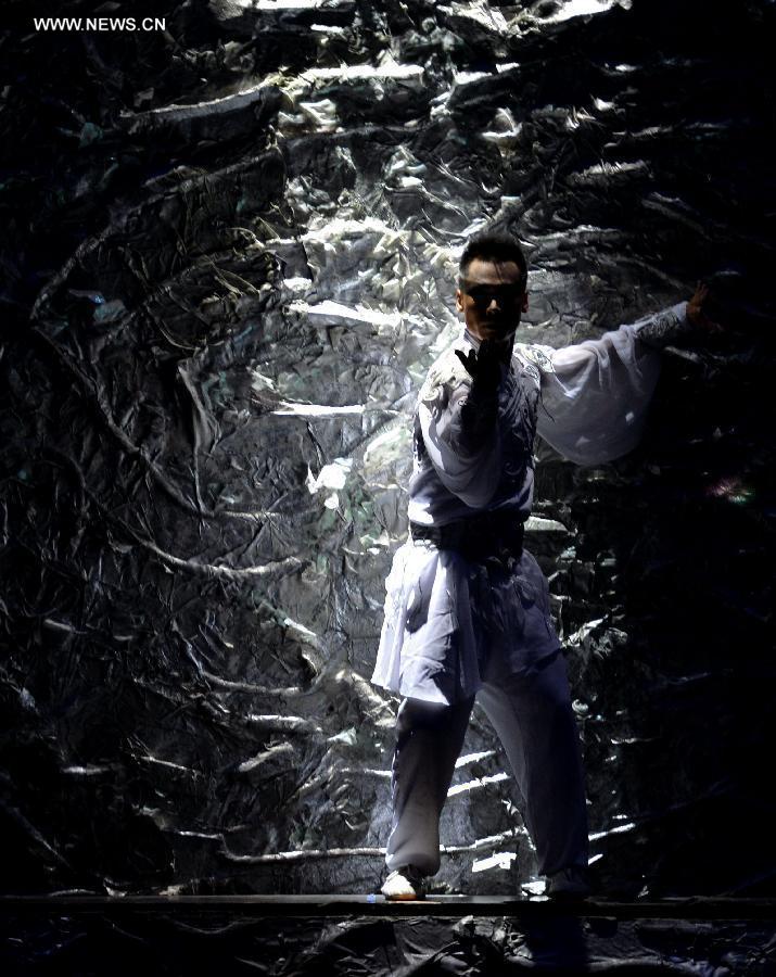 An actor performs at a show, part of the special celebration of 2014 China-ASEAN cultural exchange year in Jakarta, Indonesia, Aug. 18, 2014. The special celebration of the 2014 China-ASEAN cultural exchange year in Indonesia is organized by Chinese Ministry of Culture and expected to conclude its performance on Friday. (Xinhua/He Changshan) |