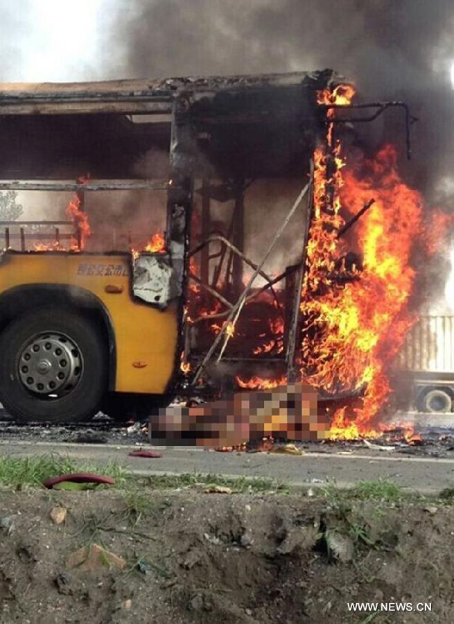 In July, a 25-year-old suspect surnamed Ou in south China's Guangzhou Province set a bus on fire in anger after gambling losses, killing two and injuring 32. A 34-year-old man was accused of setting fire to a bus in east China's Hangzhou City, injuring 32 people.