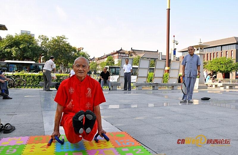 Yang Shiguang, 78, is a member of the "Unique skills team of Xi'an". He started to practice handstand, Rougong (a Chinese Kong fu) and Yoga at the age of 70, and now he is very famous for his stunning skills. (Photo/cnwest)