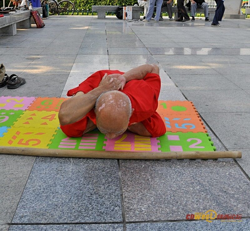 Yang Shiguang, 78, is a member of the "Unique skills team of Xi'an". He started to practice handstand, Rougong (a Chinese Kong fu) and Yoga at the age of 70, and now he is very famous for his stunning skills. (Photo/cnwest)