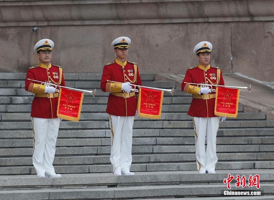 The military band of the PLA performs at the welcome ceremony attended by President Xi Jinping and visiting Uzbek President Islam Karimov on Aug. 19, 2014. (CNS/Du Yang)