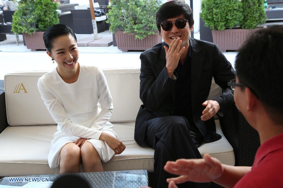 Chinese director Diao Yinan (R) and actress Kwai Lun-mei speak during an interview with Xinhua News Agency in Sarajevo, Bosnia and Herzegovina, on Aug. 20, 2014. "Black Coal, Thin Ice", a Berlin Gold Bear winner, is in open air program in the ongoing 20th Sarajevo Film Festival. (Xinhua/Haris Memija) |