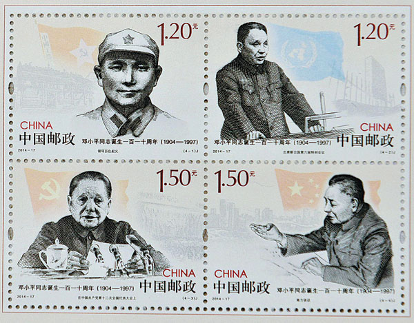 China Post will issue a set of stamps on Friday marking the 110th anniversary of the birth of former leader Deng Xiaoping. Long Wei / For China Daily |