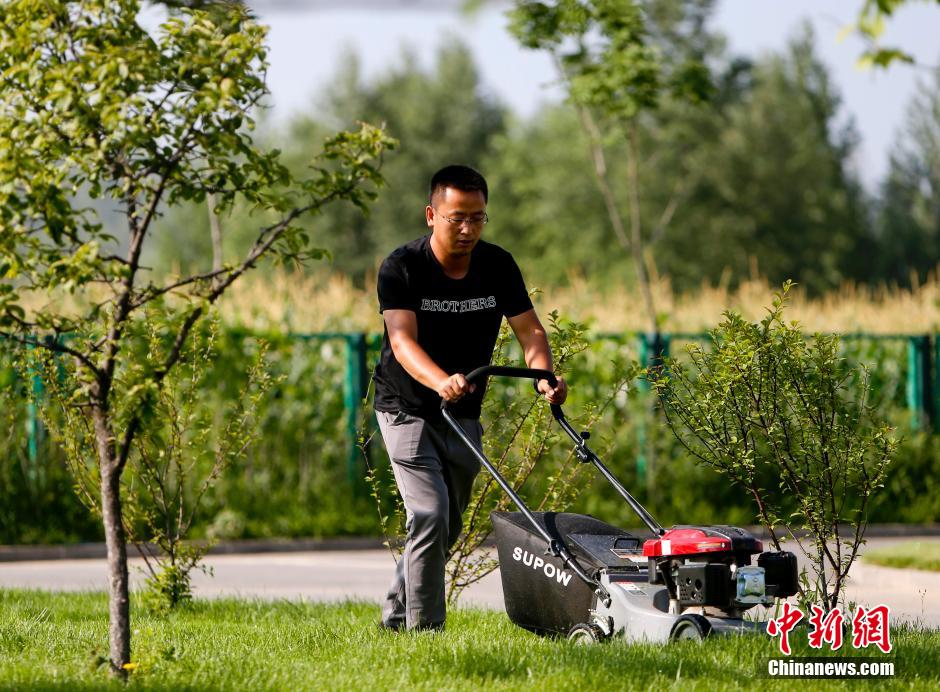 Tang Yixiang weeds the garden. (CNS/Lu Xin)