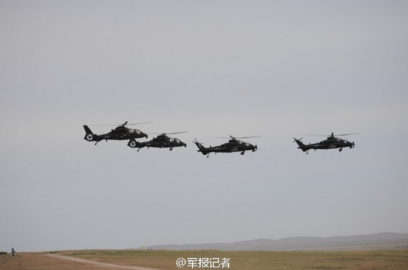 China′s Z-19 and Z-10 military helicopters debut in the “Peace Mission-2014” joint anti-terrorism military exercise held by the armed forces of the Shanghai Cooperation Organization (SCO) member states in an airport in north China on August 20, 2014. (GMW/Qian Xiaohu and Zhou Ming)