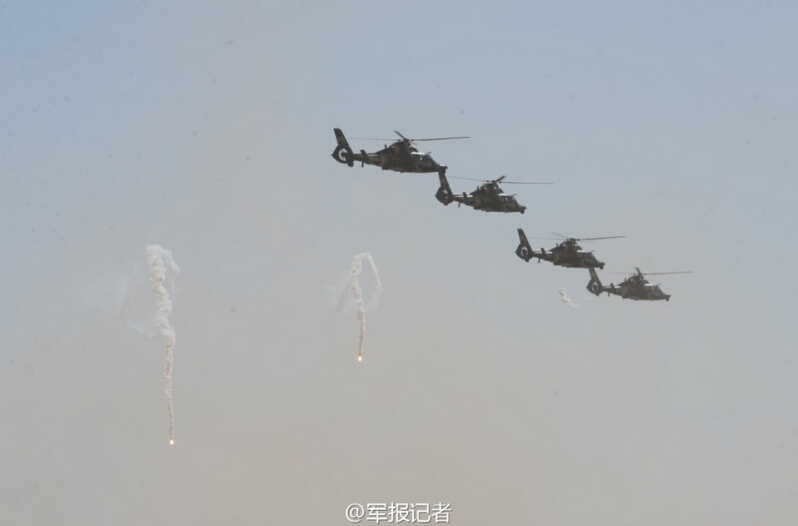 China′s Z-19 and Z-10 military helicopters debut in the “Peace Mission-2014” joint anti-terrorism military exercise held by the armed forces of the Shanghai Cooperation Organization (SCO) member states in an airport in north China on August 20, 2014. (GMW/Qian Xiaohu and Zhou Ming)