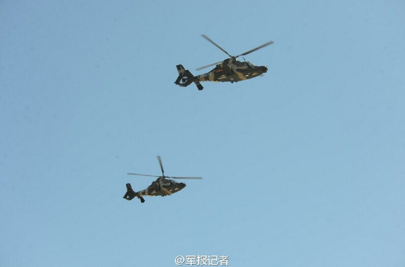 China′s Z-19 and Z-10 military helicopters debut in the “Peace Mission-2014” joint anti-terrorism military exercise held by the armed forces of the Shanghai Cooperation Organization (SCO) member states in an airport in north China on August 20, 2014. (GMW/Qian Xiaohu and Zhou Ming)