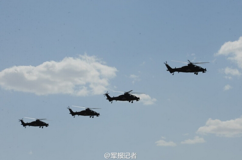 China′s Z-19 and Z-10 military helicopters debut in the “Peace Mission-2014” joint anti-terrorism military exercise held by the armed forces of the Shanghai Cooperation Organization (SCO) member states in an airport in north China on August 20, 2014. (GMW/Qian Xiaohu and Zhou Ming)
