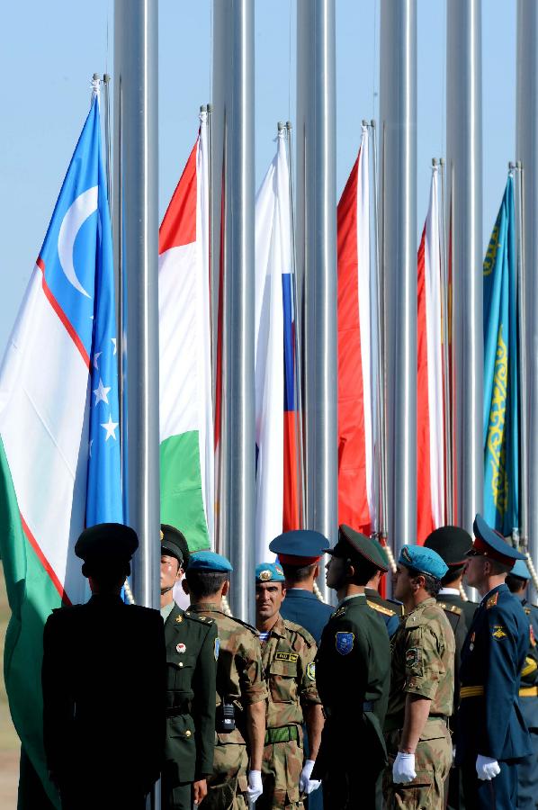 The multinational anti-terror drill "Peace Mission 2014" is kicked off by the Shanghai Cooperation Organization (SCO) in north China's Inner Mongolia on August 24, 2014. A total of 7,000 troops from China, Russia, Kazakhstan, Kyrgyzstan and Tajikistan have participated in the drill, including ground and air forces, special operations and airborne troops and others tasked with electronic countermeasures, reconnaissance, mapping and positioning. (Xinhua Photo)