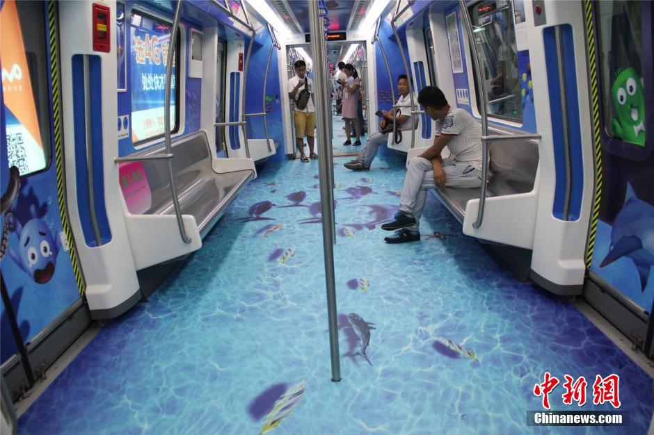 The inside of the train is decorated with 3D marine pictures. (Chinanews/Lin Bo)