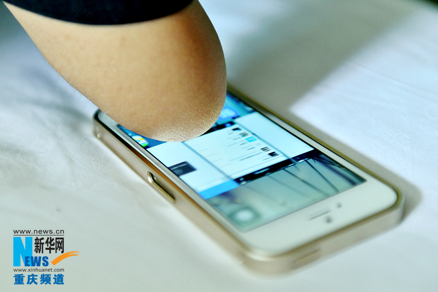 Wang Hu plays on his mobile phone on Aug. 21, 2014. (Photo/Xinhua)