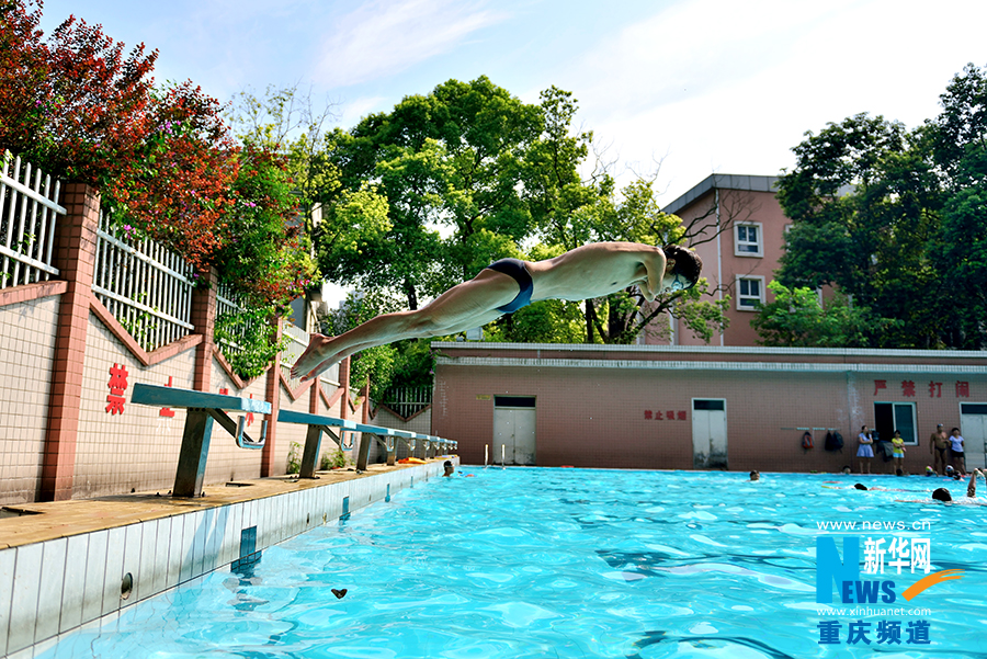 Wang Hu takes swim training in the swimming pool of Southwest University in Chongqing on Aug. 21, 2014. (Photo/Xinhua)