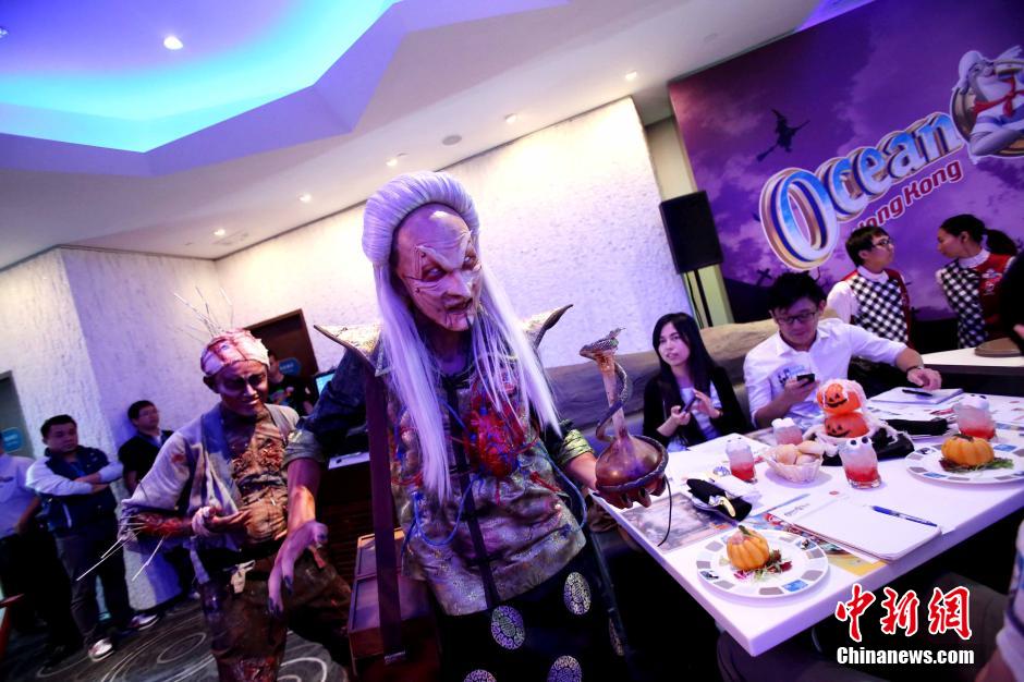 Hong Kong Ocean Park's Halloween Fest 2014 will be opened on Nov. 2, 2014. This year the Fest adds Houses and over a dozen Halloween Bash shows exhibiting some of the best in the fright industry for some heavy-duty horror. You can go there to experience the terrifying Halloween. (Chinanews.com/Hong Shaokui)