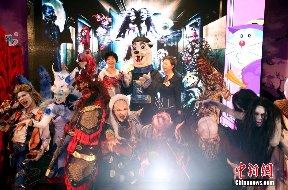 Hong Kong Ocean Park's Halloween Fest 2014 will be opened on Nov. 2, 2014. This year the Fest adds Houses and over a dozen Halloween Bash shows exhibiting some of the best in the fright industry for some heavy-duty horror. You can go there to experience the terrifying Halloween. (Chinanews.com/Hong Shaokui) |