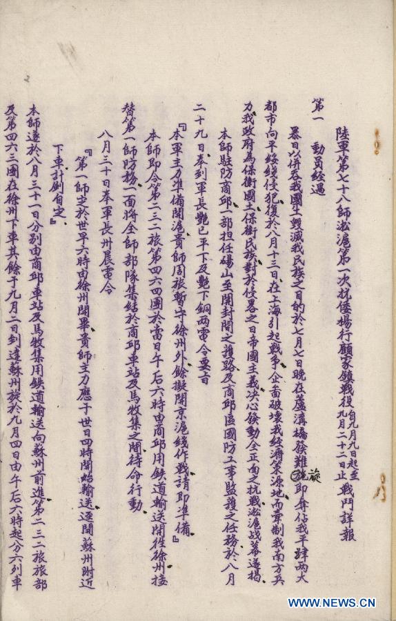 The second episode in a war documentary video series being released by China's State Archives Administration (SAA) has recalled the Battle of Songhu, one of the bloodiest battles during China's War of Resistance Against Japanese Aggression. (Xinhua)