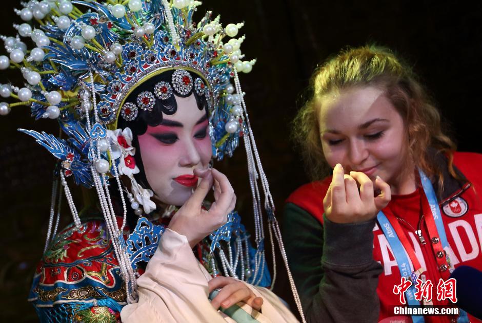 On Aug. 24, some athletes and coaches participating in the Second Summer Youth Olympic Games held in Nanjing visited Jinling Theater at Laomendong, Nanjing to enjoy performance of Beijing opera, Kun opera and acrobatics, and experience the charm of Chinese traditional opera.