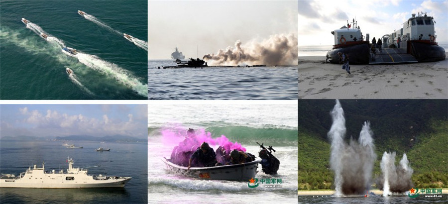 Chinese army conducts a maneuver in which many sophisticated military equipment such as amphibious armored cars are displayed. (China Military Online/Liao Zhiyong)
