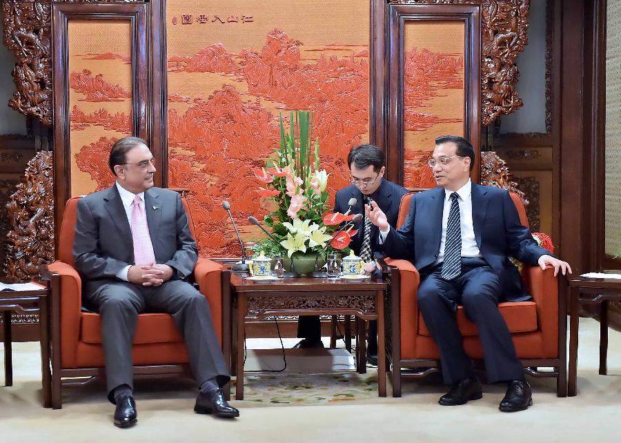 Chinese Premier Li Keqiang (R) meets with Bilawal Bhutto Zardari, former Pakistani president and chairman of Pakistan People's Party, in Beijing, capital of China, Aug. 27, 2014. (Xinhua/Li Tao)