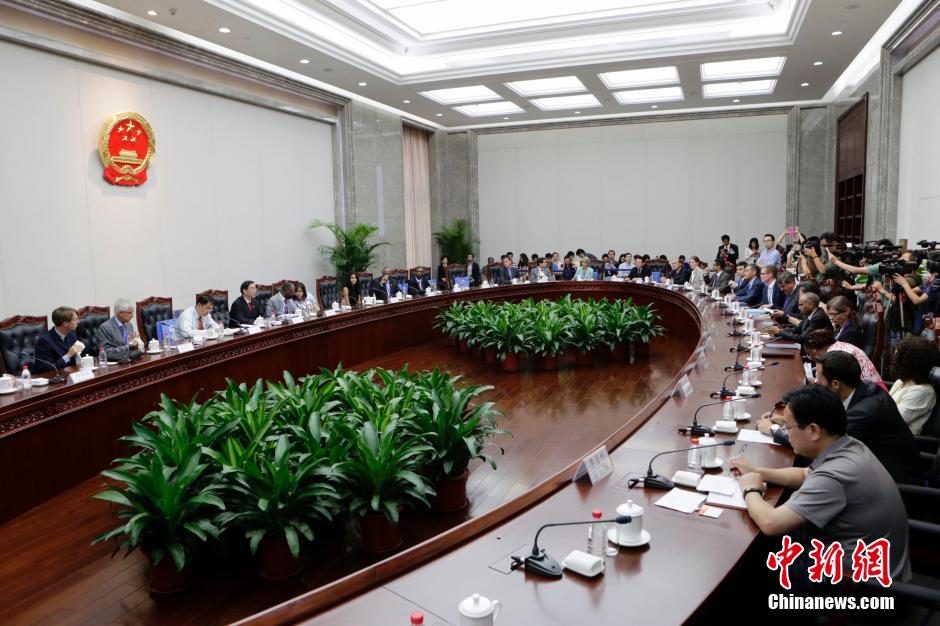 Zhou Qiang, president of the Supreme People’s Court of China, communicates with foreign diplomats on Aug. 27, 2014. (Photo/Chinanews.com)