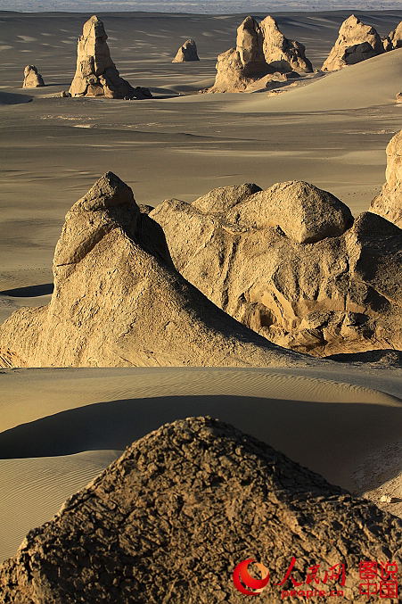 A yardang is a streamlined hill carved from bedrock or any consolidated or semi consolidated material by the dual action of wind abrasion, dust and sand, and deflation. Depending upon the winds and the composition of the weakly indurated deposits of silt and sand from which they are carved, yardangs may form very unusual shapes. (Photo/People's Daily Online)