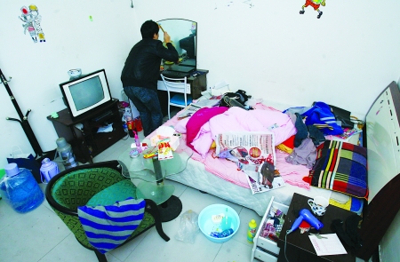 A member of the "ant tribe" lives in a 10 square meters apartment. (Photo/Xinhua)