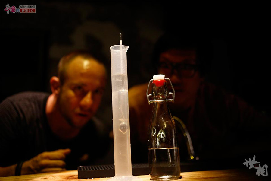 Wong shows how to measure the level of alcohol. (china.org.cn/ Zhang Hao)