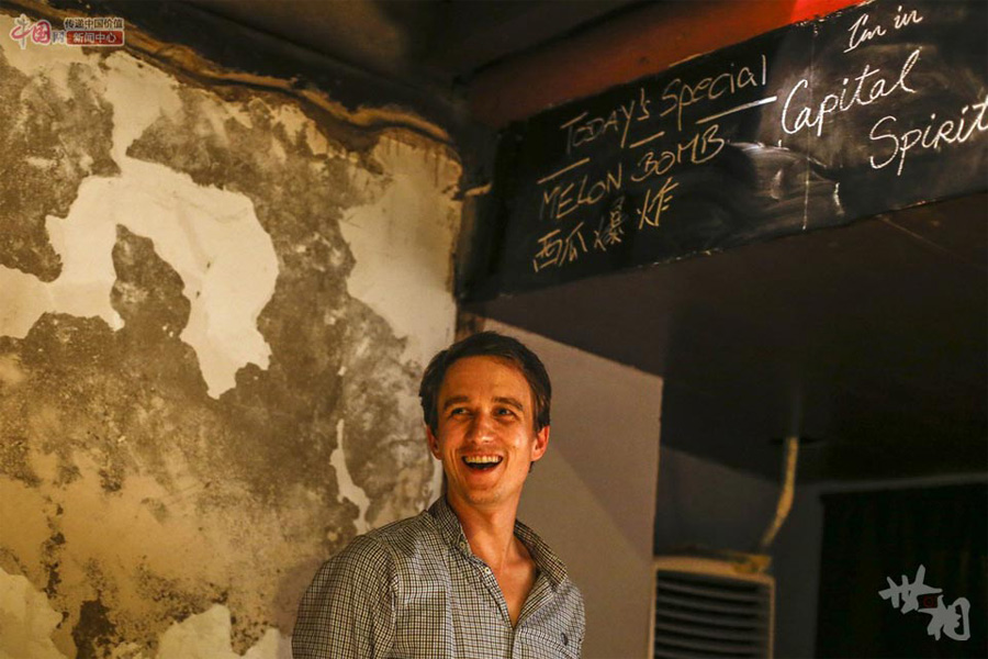 Heger stands below the blackboard. And there is a wall mottled with age behind him. It is the atmosphere Heger wants to create.(china.org.cn/ Zhang Hao)