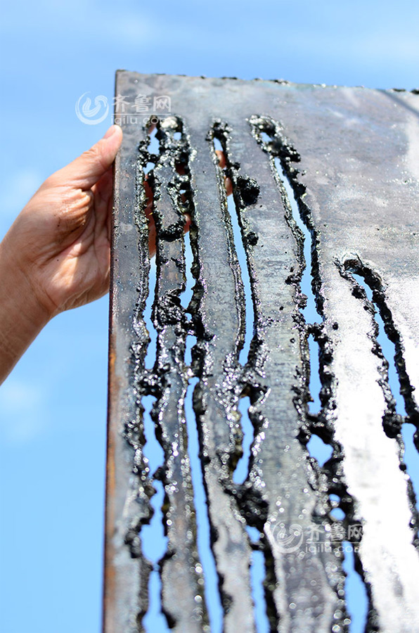A diver shows an iron plates he cuts underwater. (iqilu.com/ Sun Zhiwen) Because divers always have to do underwater cutting and underwater welding while performing tasks, operating welder and other special equipment is a very important training subject for them. |