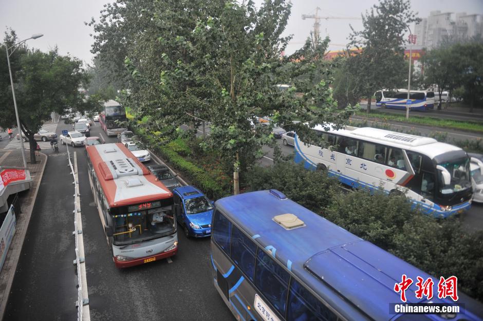 Photo taken on Sept. 1, 2014 shows road congestion in Beijing. Beijing has been urged to use public transport and shun peak hours in September as the Chinese capital braces for the gridlock that comes with the beginning of the school year. At the same time, Beijing's traffic regulator, which has called this month "the most congested" of this year, has forecast that the city's major roads will be congested from 6:45 a.m. on Monday, with the traffic only dying down around noon. (China News Service /Jin Shuo)