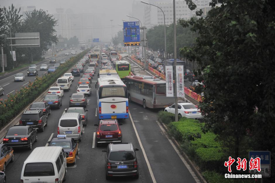 Photo taken on Sept. 1, 2014 shows road congestion in Beijing. Beijing has been urged to use public transport and shun peak hours in September as the Chinese capital braces for the gridlock that comes with the beginning of the school year. At the same time, Beijing's traffic regulator, which has called this month "the most congested" of this year, has forecast that the city's major roads will be congested from 6:45 a.m. on Monday, with the traffic only dying down around noon. (China News Service /Jin Shuo)