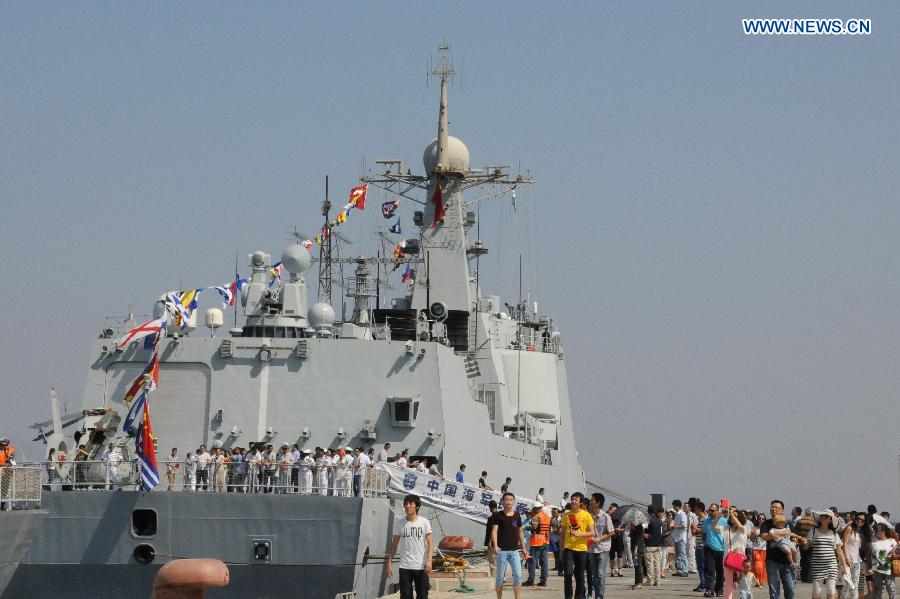 Chinese and Jordanians visit Changchun warship in Akaba, Jordan, Sept. 1, 2014. The 17th Chinese escort naval fleet, which has just finished its mission in the Gulf of Aden and Somali waters, arrived at Akaba for a 4-day visit Monday. This is the first-ever visit of Chinese warships to Jordan. (Xinhua/Jiang Shaoqing)