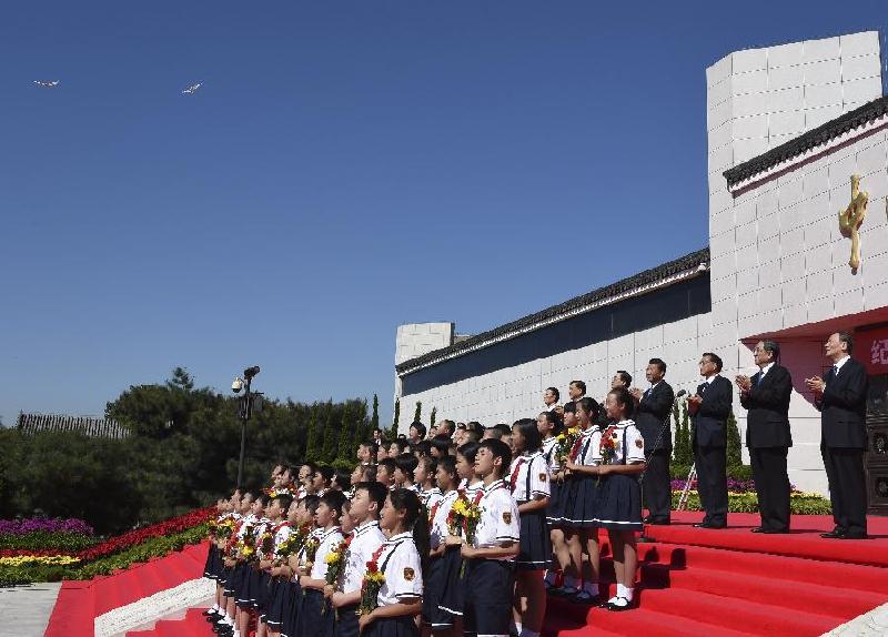 BEIJING, Sept. 3 -- Chinese leaders on Wednesday attended a ceremony to mark the 69th anniversary of the Victory Day in the Anti-Japanese War, the first time since the legislature ratified official observance of the day.