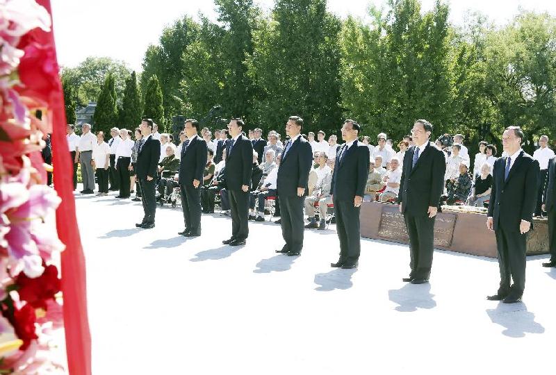 BEIJING, Sept. 3 -- Chinese leaders on Wednesday attended a ceremony to mark the 69th anniversary of the Victory Day in the Anti-Japanese War, the first time since the legislature ratified official observance of the day.