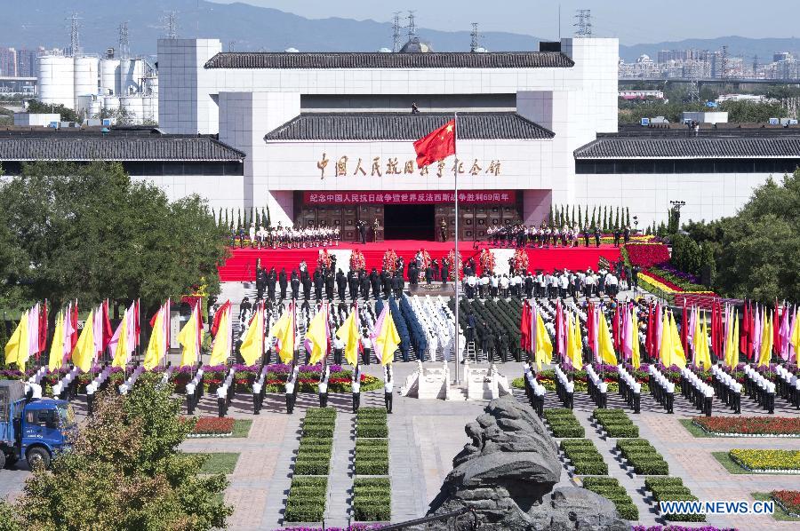 A commemoration marking the 69th anniversary of the victory of the Chinese People's War of Resistance Against Japanese Aggression, is held at the Museum of the War of Chinese People's Resistance Aganist Japanese Aggression, in Beijing, capital of China, Sept. 3, 2014. (Xinhua/Ding Lin)