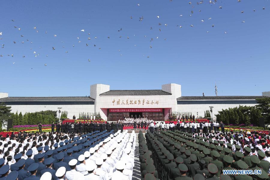 A commemoration marking the 69th anniversary of the victory of the Chinese People's War of Resistance Against Japanese Aggression, is held at the Museum of the War of Chinese People's Resistance Aganist Japanese Aggression, in Beijing, capital of China, Sept. 3, 2014. (Xinhua/Ding Lin)