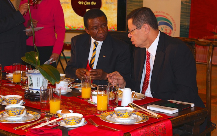 As the traditional Chinese Mid-Autumn Festival is around the corner, the guests taste traditional moon-cakes and typical Chinese breakfast during the event held on the Open Day in China's Embassy to South Africa in Pretoria on Aug. 29, 2014.