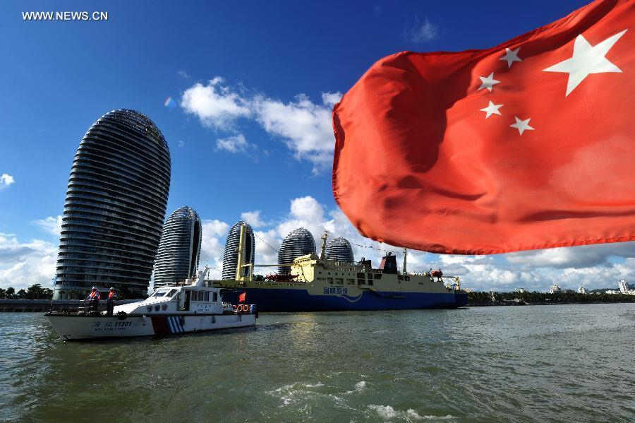 Coconut Princess, a cruise ship, leaves the port of Sanya for the Xisha Islands in south China's Hainan province on Sept. 2, 2014. The cruise trip between Sanya and Xisha was officially launched on Tuesday. The ship offers tourists a four-day, three-night cruise to Xisha, which has more than 40 islets and reefs. (Xinhua/Zhao Yingquan)