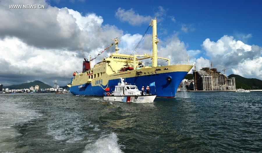 Coconut Princess, a cruise ship, leaves the port of Sanya for the Xisha Islands in south China's Hainan province on Sept. 2, 2014. The cruise trip between Sanya and Xisha was officially launched on Tuesday. The ship offers tourists a four-day, three-night cruise to Xisha, which has more than 40 islets and reefs. (Xinhua/Zhao Yingquan)