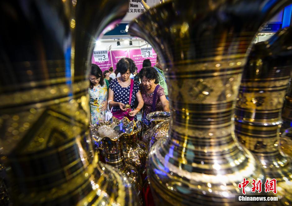 Bronze wares from Pakistan at the expo, Sept. 2, 2014. (Chinanews/Liu Xin)