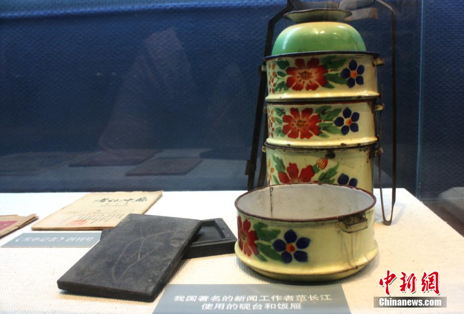 The inkstand and lunchboxes of Fan Changjiang, a noted Chinese journalist, are exhibited in the memorial. (CNS/Gu Hua)