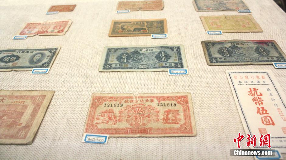 Currency used during the period of the anti-Japanese war is exhibited in the memorial. (CNS/Gu Hua)