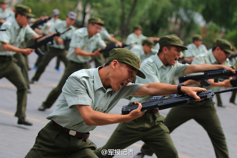 A total of 3,287 Peking University freshmen students go through a two-week military training in Huairou, Beijing as of Aug. 16, 2014, during which they will learn military skills and knowledge of national defense. (Photo/www.81.cn)